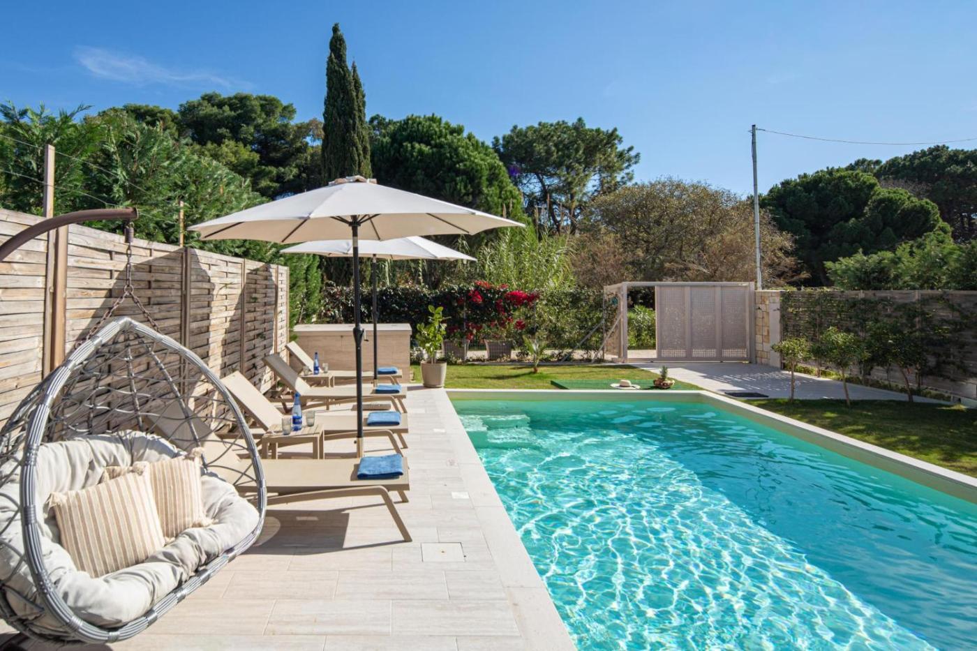 Two-Bedroom Villa. This villas standout feature is the private pool. Boasting a private entrance, this air-conditioned villa includes 2 bedrooms and 1 bathroom with a hairdryer. The well-fitted kitchen has a refrigerator, a dishwasher, a microwave and a toaster. The villa offers a TV, a washing machine, a tea and coffee maker, a barbecue as well as garden views. The unit has 3 beds.