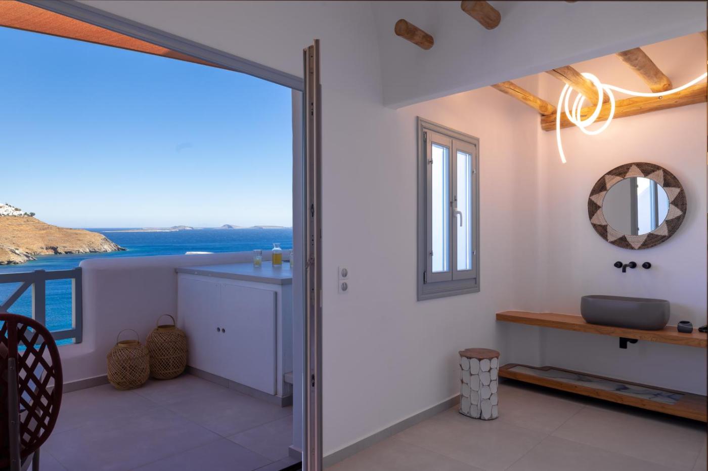 Suite with Hot Tub. This suite boasts a hot tub and a spa bath. The suite provides air conditioning, a private entrance, a terrace with sea views as well as a private bathroom featuring a shower. The unit offers 1 bed. ;