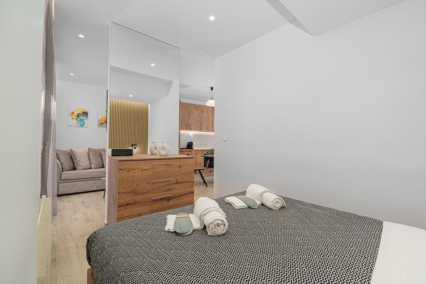 One-Bedroom Apartment. Boasting a private entrance, this air-conditioned apartment features 1 living room, 1 separate bedroom and 1 bathroom with a walk-in shower and a hairdryer. The well-equipped kitchen has a stovetop, a refrigerator, a dishwasher and kitchenware. Featuring a balcony with garden views, this apartment also features a washing machine and a flat-screen TV with streaming services. The unit has 1 bed.