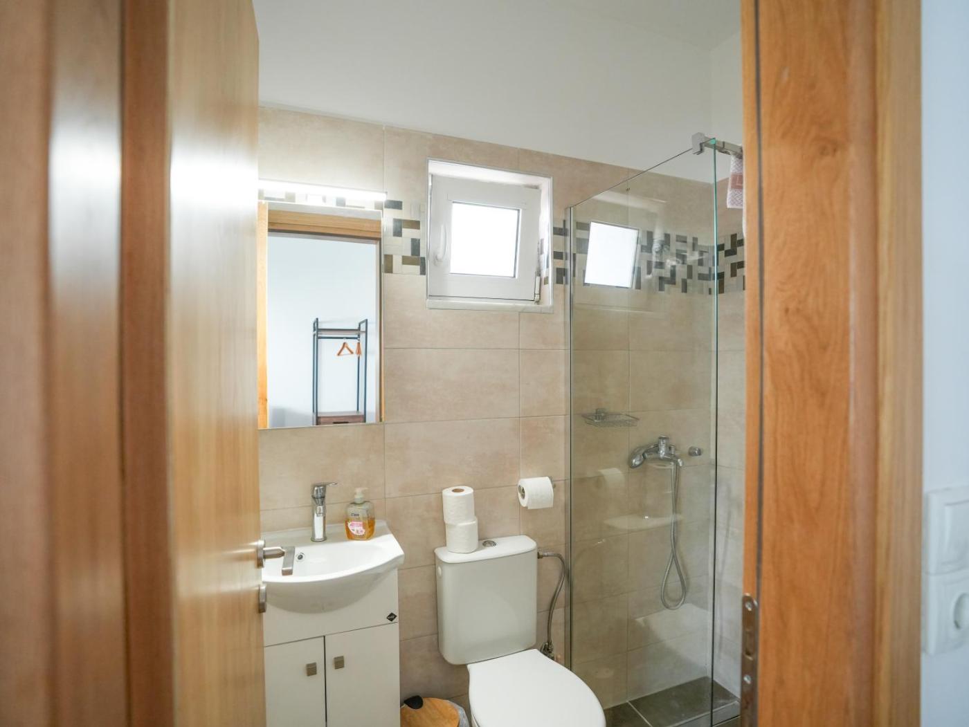 One-Bedroom Apartment. Featuring a private entrance, this air-conditioned apartment comprises a kitchenette, 1 bedroom and 1 bathroom with a shower and a hairdryer. Meals can be prepared in the kitchenette, which comes with a stovetop, a refrigerator, kitchenware and a tea and coffee maker. Boasting a terrace with sea views, this apartment also provides a washing machine and a flat-screen TV. The unit offers 1 bed.